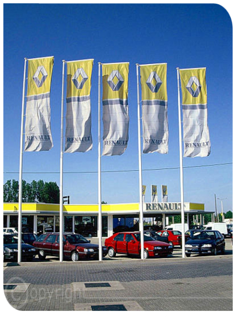 drehbarem Auslegersystem. Dieser Mast für den Einsatz mit nicht hissbarem Ausleger hat werkseitig einen gegossenen Aufsatz aus galvanisiertem Stahl und einer Teflonlagerung. Der Auslegerarm besteht aus einem weißlackierten Aluminiumprofil mit einer Laufnut für das Einsetzen der Flagge (sofern diese mit einem Kederband ausgerüstet ist). Ansonsten wird die Fahne mittels Hohlsaum über den Auslegerarm geschoben. Der Ausleger ist standardmäßig in zwei Längen lieferbar: 120 cm und 150 cm. Durchmesser der Auslegerstange beträgt 30 mm, der Durchmesser der Laufnut 10 mm, die Öffnung der Laufrille 5 mm.